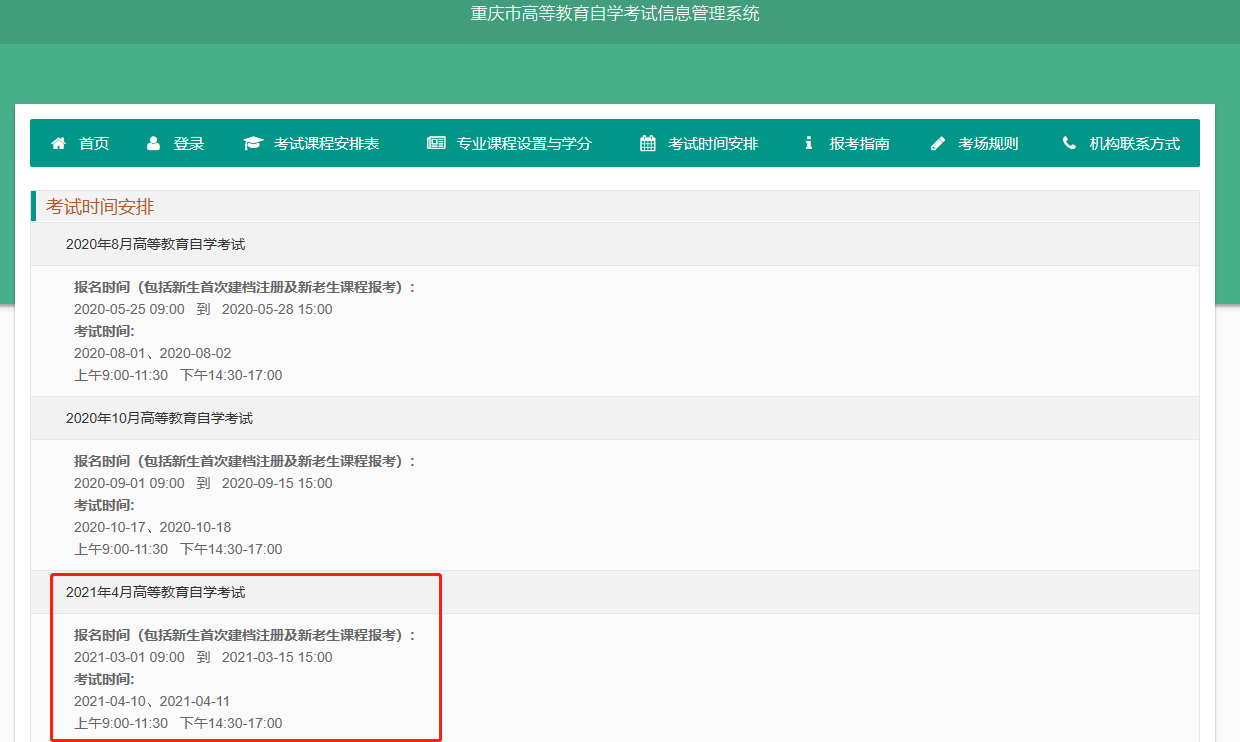 2021年4月重庆市高等教育自学考试报名时间如下: