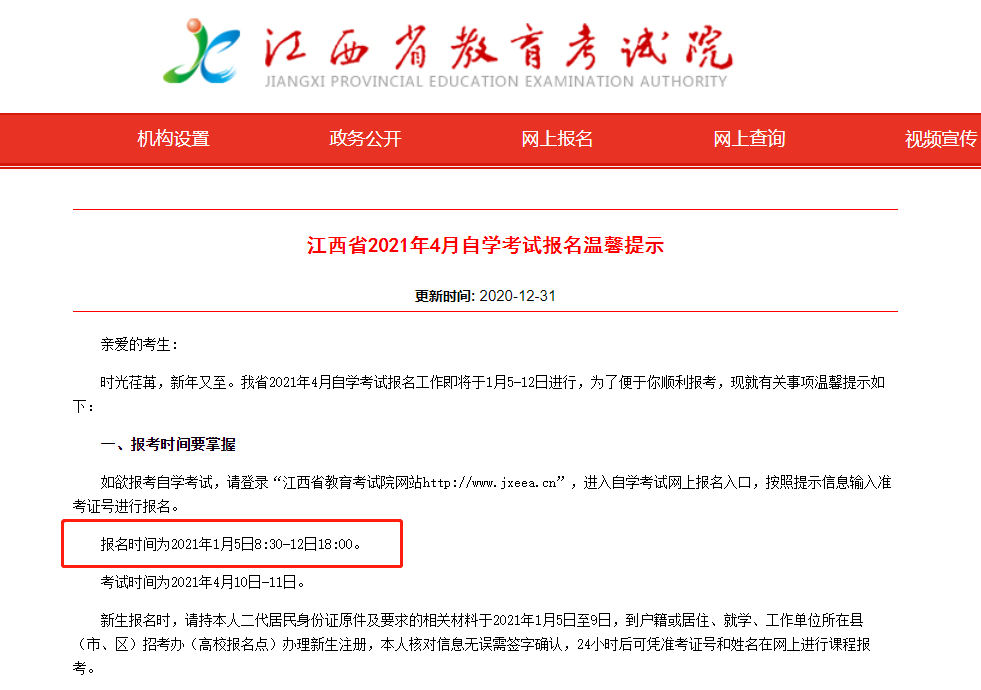 江西省2021年4月自学考试报名温馨提示-尊龙凯时人生就是搏