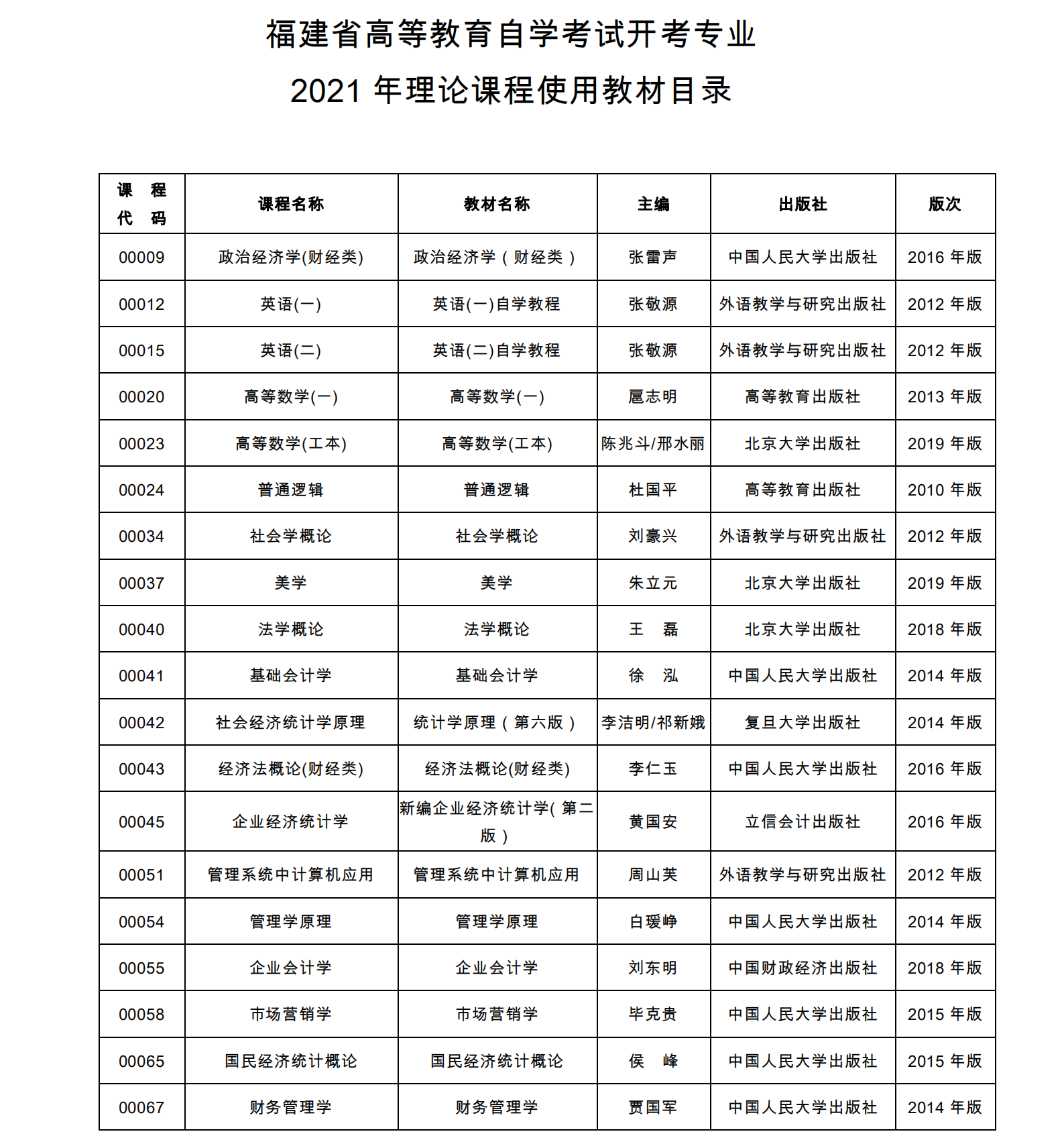 福建省教育考试院关于印发高等教育自学考试开考专业