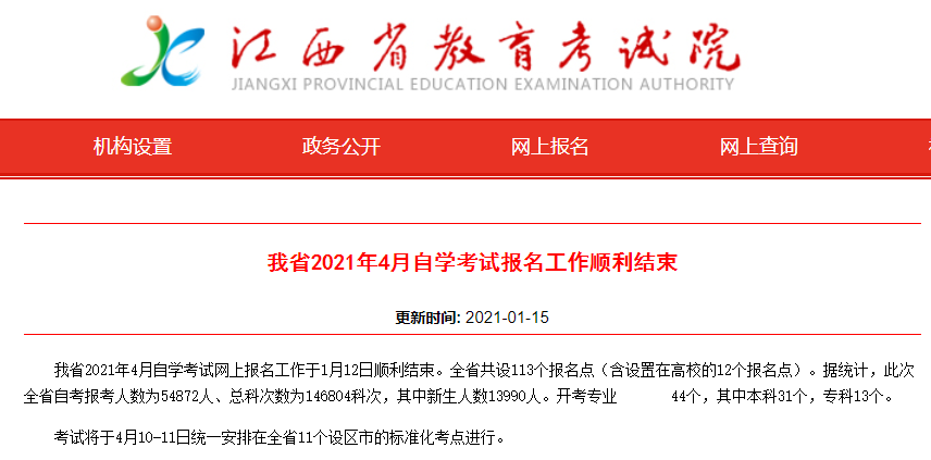 考试将于4月10-11日统一安排在全省11个设区市的标准化考点进行。