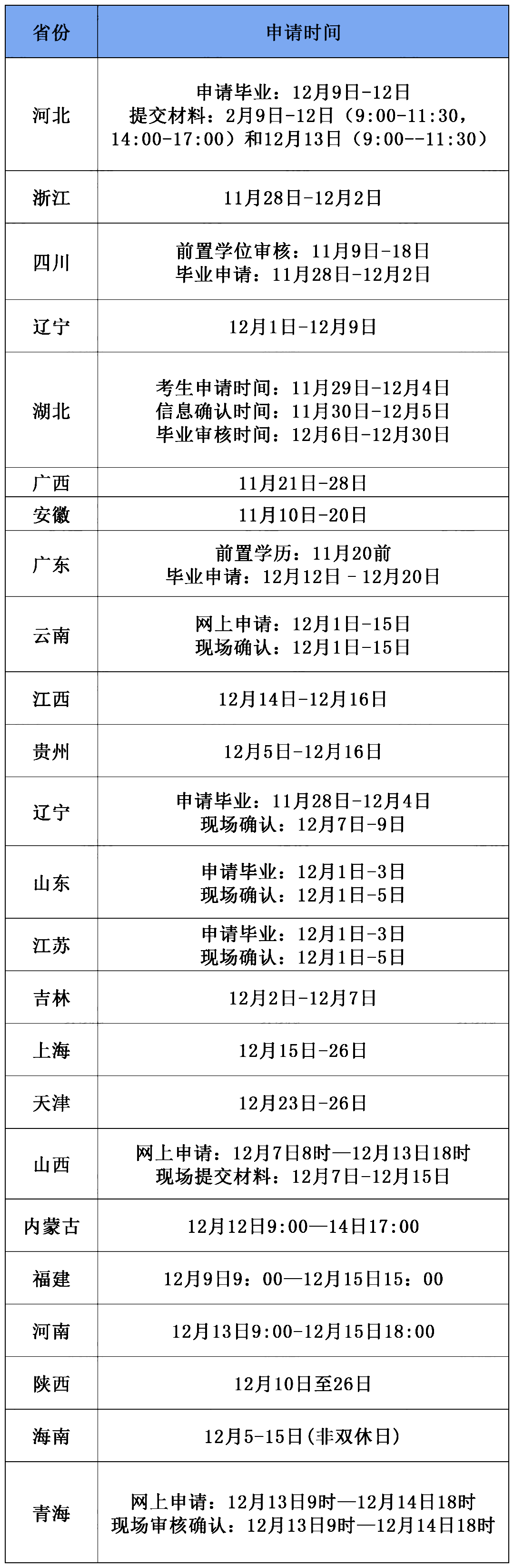 毕业申请:12月14日—15日